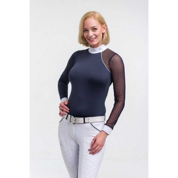 Una de las piezas más versátiles. Esta camiseta técnica de concurso es una excelente incorporación a tu guardarropa de equitación de alto rendimiento. La manga estilo raglán, los perfiles en contraste y el logo de Cavalliera aunan elegancia y tecnología. Confeccionada con tejidos de rendimiento superior, es ideal para competición. Lavable a máquina y de fácil cuidado. Presenta un diseño atemporal y una funcionalidad deportiva que atrae a las amazonas de cualquier disciplina.
