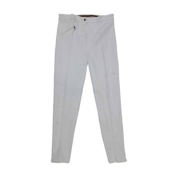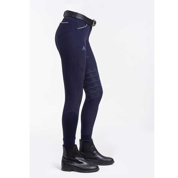 Pantalones hípicos que combinan un estilo elegante con tejidos ligeros y la tecnología Meryl Fiber. Desarrollados para un uso activo, de secado rápido y comodidad excepcional durante la competición. Estos pantalones de montar sientan bien en cualquier tipo de figura y elevan y mejoran la movilidad de las rodillas gracias a su revestimiento especial en los laterales. Con tecnología de agarre: el grip de silicona de la zona del asiento brinda una gran seguridad en la monta y una posición de las piernas más firme, sin el volumen adicional de una capa full-seat. El grip interior de la banda elástica de la cintura proporcionará a la amazona una gran sujeción a este nivel incluso en los movimientos extremos. Muy completos, con pasadores anchos y bolsillos profundos en la parte trasera y delantera con perfiles en contraste. Parte inferior de cada pernera en lycra para colocar las botas más fácilmente. ¿No compites? Aún así te mereces estos pantalones de montar profesionales y elegantes.