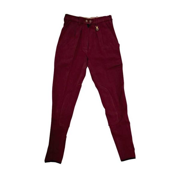 Pantalón para montar a caballo para mujer realizado en tejido de algodón, muy fuerte y resistente al roce. Con trabillas para el cinturón y cierre de velcro en el tobillo.