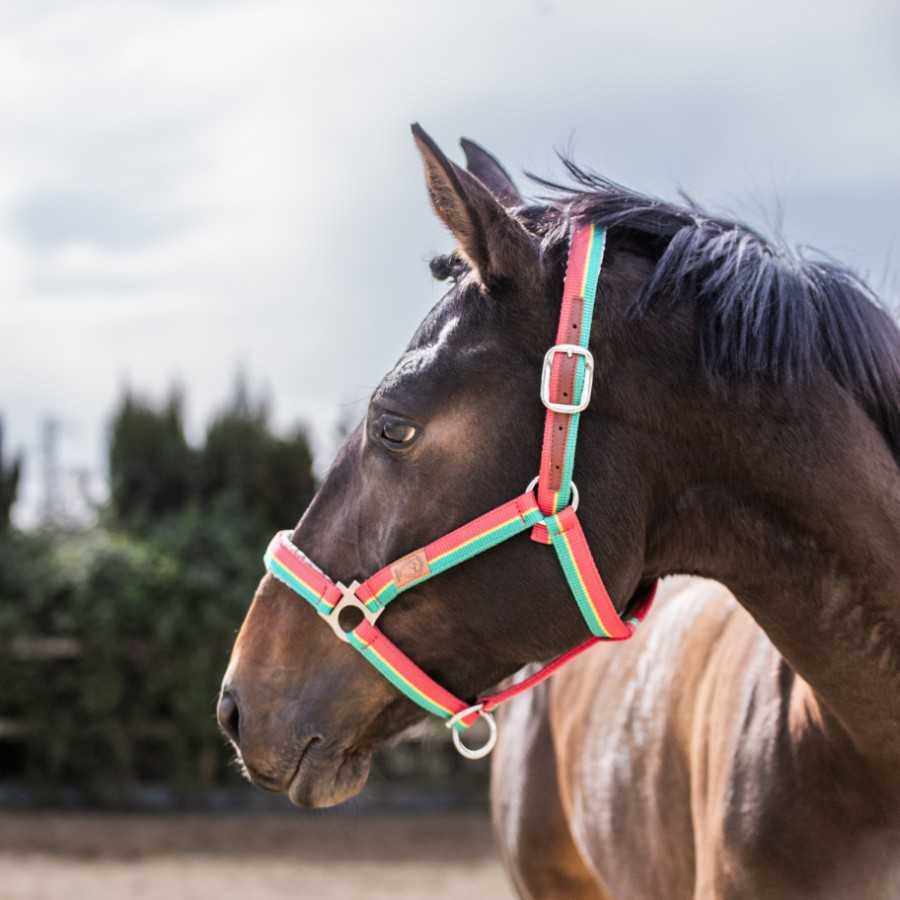 Cabezada de nylon doble plano con acolchado en bozo y testero. Con sistema Closed Mouth, que permite colocar el ramal y dirigir al caballo. La acción del ramal sobre la anilla hace que la cabezada se cierre y ejerza un control directo sobre el caballo.