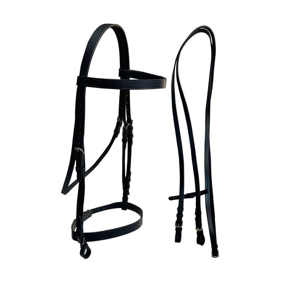 Cabezada básica para filete con riendas de cuero.