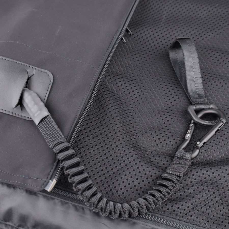 El elegante material softshell en la superficie otorga al chaleco un aspecto suave y atractivo, especialmente apreciado en competiciones. Esta evolución se adapta perfectamente a la chaqueta que se lleve debajo, y al mismo tiempo ofrece una mayor libertad de movimiento. El material elástico está finamente tejido, lo que le da una superficie lisa y sin imperfecciones. Otra novedad es la correa de activación, ahora en un discreto color negro, lo que convierte al chaleco airbag en un compañero discreto en torneos.