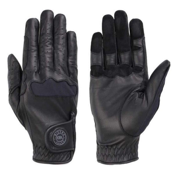 Guantes con combinación de cuero y punto y cierre de velcro. COMPOSICIÓN Parte dorsal: crochet Parte palmar: cuero