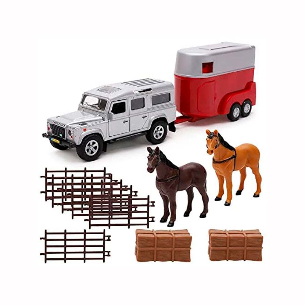 JUGUETE: COCHE LAND ROVER CON VAN & CABALLOS & CER