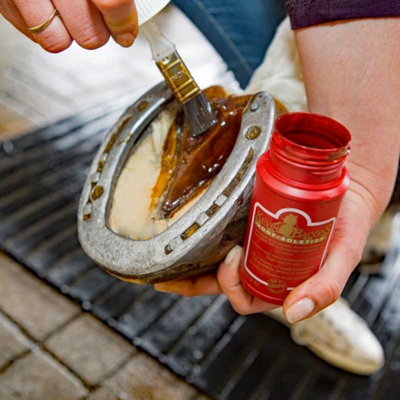 Se aconseja aplicar Hoof Solution sobre la palma y la ranilla en cada herrado y también antes de colocar silicona.