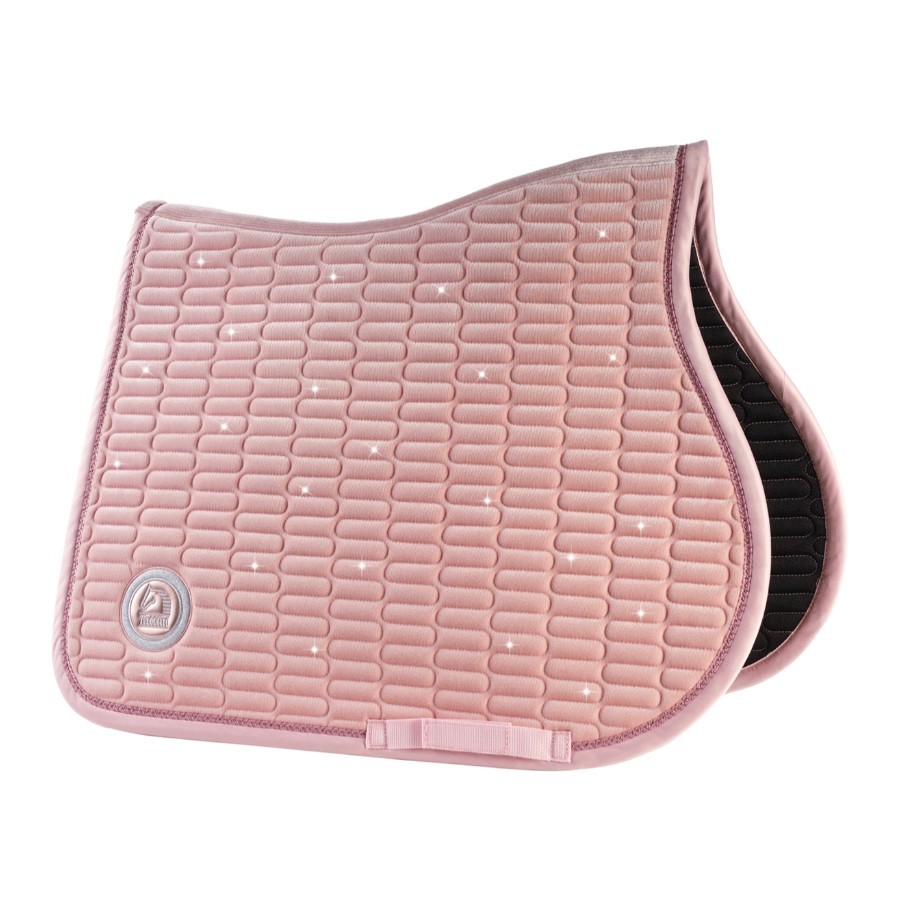 Confeccionado en tejido técnico efecto melocotón con suave acolchado ondulado, filamentos de lúrex y un elegante ribete trenzado tono sobre tono. Decorado con una preciosa insignia de lúrex plateada en ambos lados. Con forma en la cruz, forro de micromalla, relleno de espuma de 15 mm y relleno de poliéster de 240 g. Se complementa con el mosquero Maxxi.